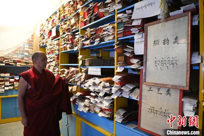 ? à l'avenir, si quelqu'un souhaite consulter un sutra bouddhiste, il ne sera plus nécessaire de le chercher en les dépla?ant un par un, ou même de monter sur une échelle pour le consulter comme c'est le cas aujourd'hui. Il suffira d'ouvrir le catalogue numérique des anciens manuscrits, et il y a de fortes chances que le texte apparaisse immédiatement, rendant la consultation très pratique. ? En entrant dans le pavillon des sutras, on constate que les étagères du premier niveau sont soigneusement alignées avec des anciens manuscrits déjà classés et organisés, les anciennes étagères en fer jaune, rudimentaires et peu avenantes, ont été remplacées par des étagères en bois massif, solides et résistantes à l'humidité, les niches à sutras et à statues de Bouddha, après avoir été restaurées et décorées de peintures, apparaissent sous un nouveau jour. Les travaux de restauration se poursuivent cette année aux deuxième et troisième niveaux du pavillon des sutras, après plus de quarante ans d'efforts inlassables, plus de 40 000 anciens manuscrits du monastère de Labrang ont été pratiquement classés et organisés, établissant une base solide pour le lancement d'un projet de numérisation.