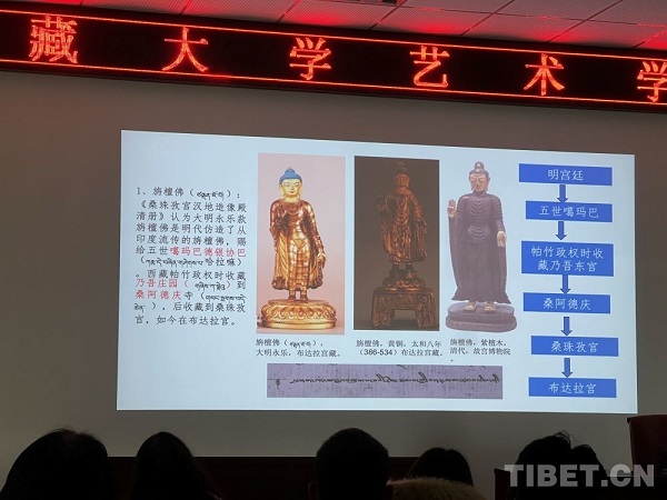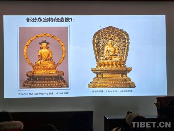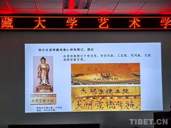 Le 8 mai, à l'Institut des beaux-arts de l'Université du Xizang, une conférence sur la problématique des statues de la période Yongle-Xuande conservées au Palais du Potala a attiré de nombreux passionnés d'érudition. Le professeur Palden Tsering, appartenant à l'équipe de recherche du service de gestion des reliques culturelles du Palais du Potala, a présenté au public, à travers de nombreux exemples de statues de la dynastie des Ming de la période Yongle-Xuande, comment ces statues ont agi comme vecteur pour renforcer un sentiment d'attachement entre les différentes ethnies.