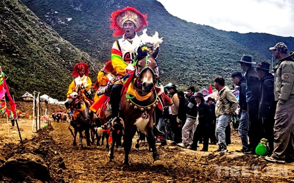 Le 29 ao?t marquait le deuxième jour de l'édition annuelle du festival d'Ongkor dans le village de Puxia, situé dans le canton de Changgo, du comté de Konggar, à Shannan, dans la région autonome du Xizang. Puxia est un petit village montagnard de plus de 200 habitants, où le festival d'Ongkor est célébré chaque année. Ce jour-là, s'est tenue la course équestre, événement phare traditionnel du festival. Les meilleurs cavaliers du village, vêtus de costumes traditionnels de guerriers locaux, ont paré leurs chevaux de couleurs vives et ont participé avec enthousiasme aux épreuves de tir à l'arc à cheval et de compétitions équestres.