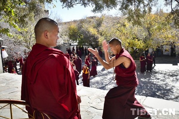 • Débats sur les soutras au monastère de Tashilhunpo : une joute de sagesse rythmée d'applaudissements et de battements de pieds