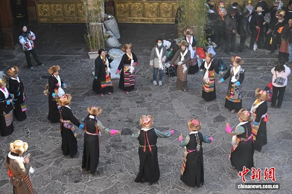 à l'approche du festival de Pal Lhamo (également appelé ? Festival des Déesses ?) qui a lieu le 15e jour du dixième mois du calendrier tibétain, les femmes de Lhassa, au Xizang, ont exécuté le 28 novembre des danses traditionnelles devant le temple de Jokhang pour accueillir cette fête. Le ? Festival des Déesses ?, également connu comme la fête de la déesse Palden Lhamo, est appelé en tibétain ? Bailarizhui ?. Selon la légende, Pal Lhamo, fille de Palden Lhamo, l'une des principales divinités protectrices du bouddhisme tibétain, s'est liée par un v?u de fidélité éternelle à Tritsun Tsan malgré l'opposition de sa mère, furieuse, Palden Lhamo aurait banni Tritsun Tsan sur la rive sud de la rivière Lhassa, ne leur permettant de se revoir qu'une seule fois par an, le 15e jour du dixième mois du calendrier tibétain.