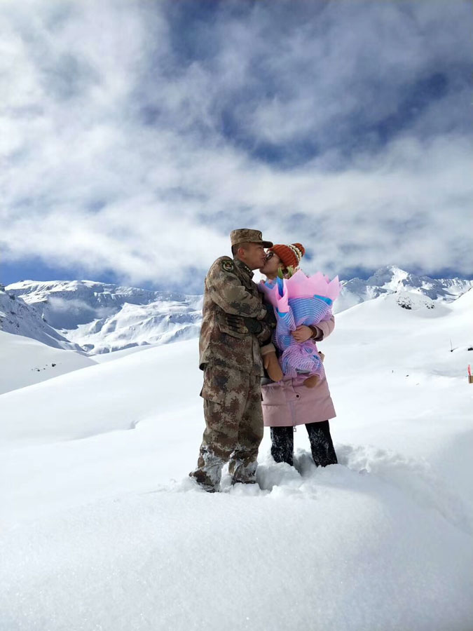 Zhang Jinyuan et Wang Mei ont organisé un mariage de style tibétain le 13 janvier dans un poste frontière à Yumai, dans la région autonome du Tibet (sud-ouest de la Chine), au pied du Qomolangma, plus connu en Occident sous le nom de mont Qomolangma (ou mont Everest).