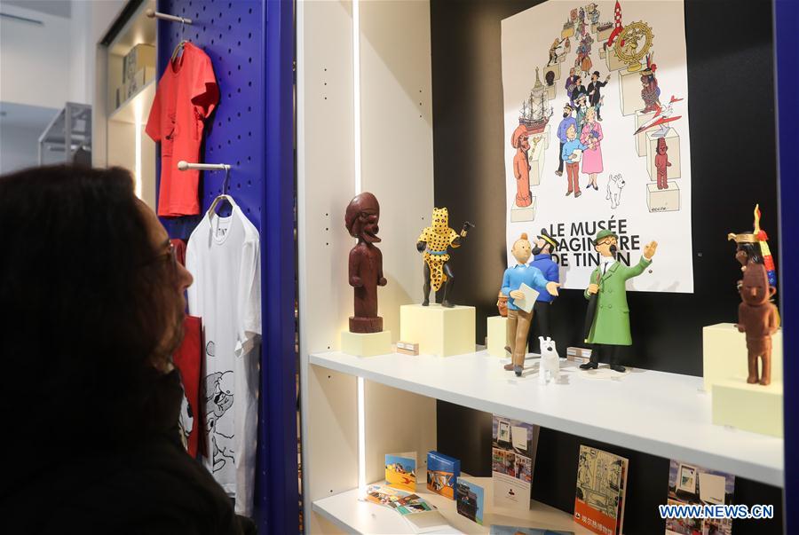 Une cliente choisit des produits Tintin dans un magasin Tintin de Shanghai (est de la Chine), le 26 février 2019. La série de bandes dessinées belges ? Les Aventures de Tintin ? a ouvert son premier magasin à thème phare à Shanghai la semaine dernière. Située dans le centre de la ville, la boutique vend plus de 1 000 produits autour de ce personnage emblématique, dans plus de 50 catégories.