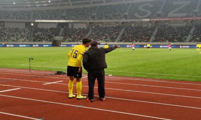 à 60 minutes, l'entra?neur-chef Zhang Biao guide la tactique de Tsewang Phuntsok.
