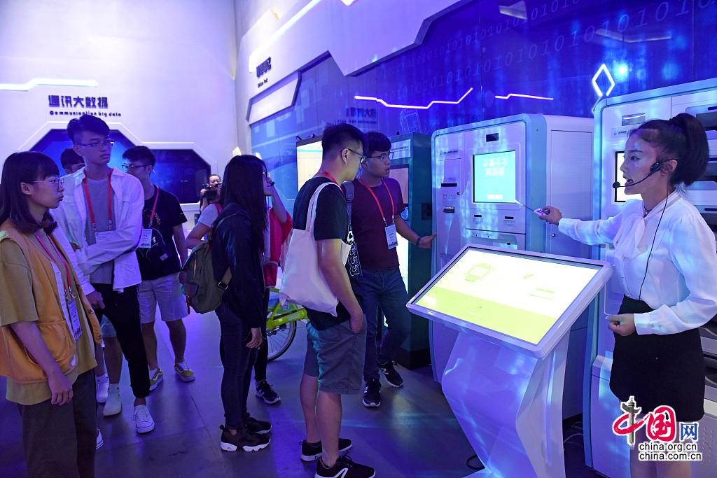 Des étudiants au Centre d'exposition des mégadonnées de Huainan.