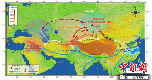 D'après les experts, les deux cultures ont été transportées il y a 5 500 ans en même temps que le mouvement de la première population agricole de l'Iran en Asie occidentale vers les piémonts de l'ouest des monts Tianshan en Asie centrale. Puis vers le nord jusque dans la région d'Alta? par les premiers agriculteurs et éleveurs de l'Asie centrale, où une agriculture basée sur le blé et l'orge tibétaine s'est ensuite formée dans la région du site de la Cave de Tongtian il y a 5 200 ans.
