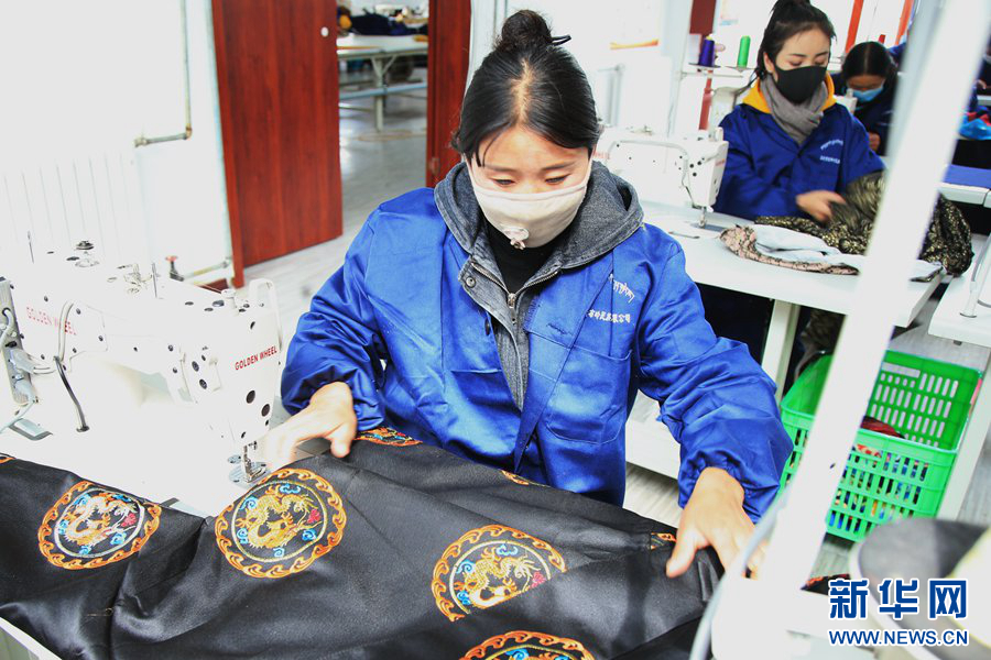 Dans le parc industriel provincial de lutte contre la pauvreté de la Préfecture autonome tibétaine de Yushu, dans la province du Qinghai, Tseyang, une femme tibétaine, observe une robe tibétaine : il faut modifier ici, et ajuster là. Avant qu'une robe tibétaine qualifiée ne quitte l'usine, elle doit d'abord passer son approbation.