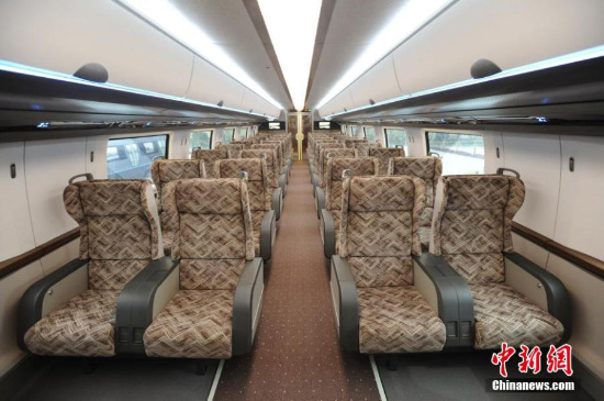 Photo prise le 21 juin 2020 montrant l'intérieur du prototype de train à sustentation magnétique développé en Chine.