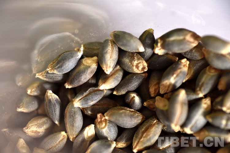 En photo : l'orge bleue tibétaine utilisée pour la transformation et la production de tsamba de l'orge bleue.