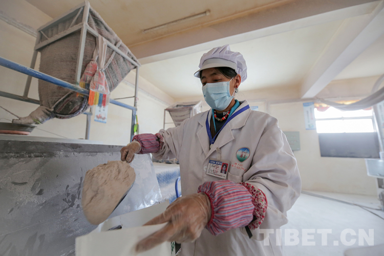 En photo : Sonam Meiduo, un villageois du village de Caimai, dans le canton de Rerong, comté de Luntse, dans l'atelier de transformation et de production.