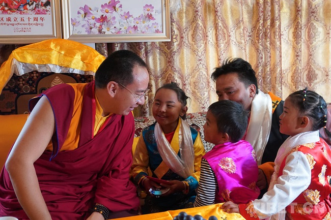 Voyant les trois adorables enfants de la famille de Kunsang, le 11e Panchen Lama a déclaré : ? Vous devez aider vos enfants à apprendre, et ce n'est qu'après avoir acquis des connaissances qu'ils pourront avoir plus d'opportunités. En même temps, il faut développer chez les enfants l'habitude du travail ardu, et plus tard ils pourront mieux batir notre région natale. ?