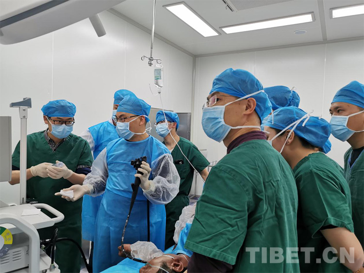 Des médecins venus en aideau Tibet effectuant des opérations avec le personnel médical local du district de Biru.