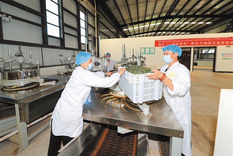En photo : l'atelier de transformation du thé dans le village de Mêdog du bourg de Mêdog, dans le comté de Mêdog.