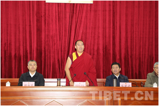 Panchen Erdeni Choskyi Gyalpo, membre du Comité permanent du Comité national de la Conférence consultative politique du peuple chinois (CCPPC), vice-président de l'Association bouddhiste de Chine et président de la branche au Tibet de l'Association bouddhiste de Chine, président de la Tibet Development Fund a participé à la cérémonie de lancement et a prononcé un discours.