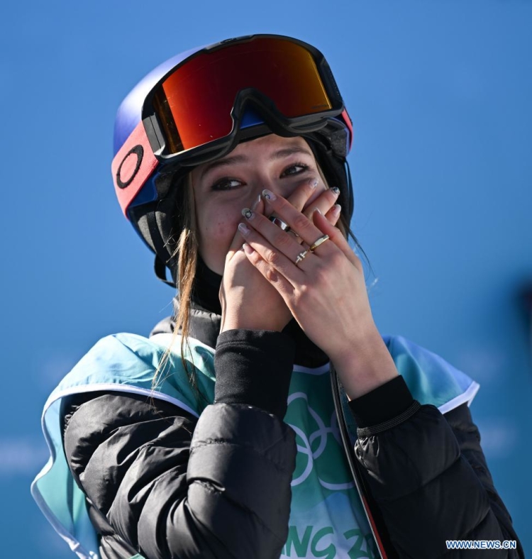 Avec un score combiné de 188,25 points, à savoir 93,75 pour son premier passage et 94,50 pour son troisième, Gu Ailing a atteint la troisième place après son deuxième passage pour finalement remporter l'or à son troisième passage, alors qu'il s'agit de la première compétition olympique de ce sport.