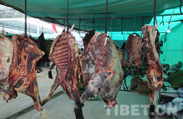 En photo : Du b?uf à vendre lors de la 42e Foire d'échange de matériaux de Yarlung de la ville de Shannan, dans la région autonome du Tibet.