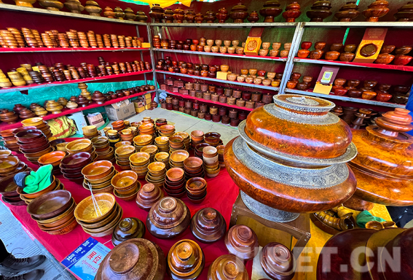 En photo : Des bols en bois à vendre lors de la 42e Foire d'échange de matériaux de Yarlung de la ville de Shannan, dans la région autonome du Tibet.