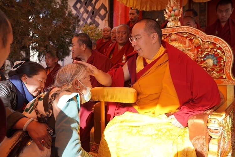 Tsering Chodron, agée de 71 ans, est originaire du comté de Lhatse, dans la ville de Shigatsé. Ce jour-là, elle est venue à pied à l'aide d'une canne, accompagnée de sa fille, au monastère de Tashilhunpo pour recevoir la bénédiction du panchen Rinpoche. Voyant la vieille dame s'approcher lentement, le panchen a affiché une expression de préoccupation, s'est penché en avant, a pris le khata avec deux mains et l'a suspendu autour du cou de la vieille dame. Le panchen l'a bénie doucement et lui a souhaité une longue vie et une bonne santé.