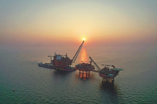 Vue du gisement de gaz naturel offshore Bozhong 19-6 dans la baie de Bohai. (Photo / Xinhua)