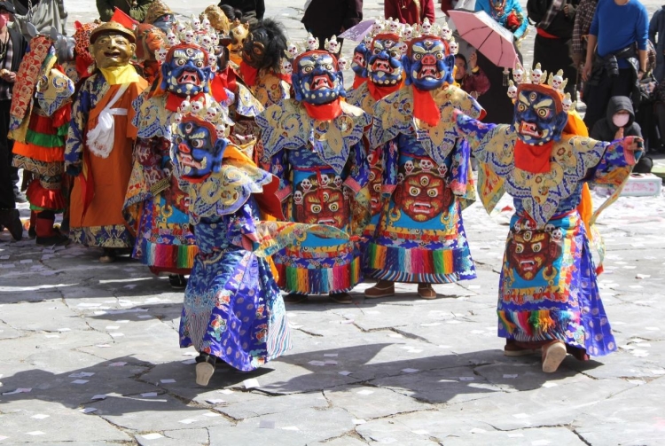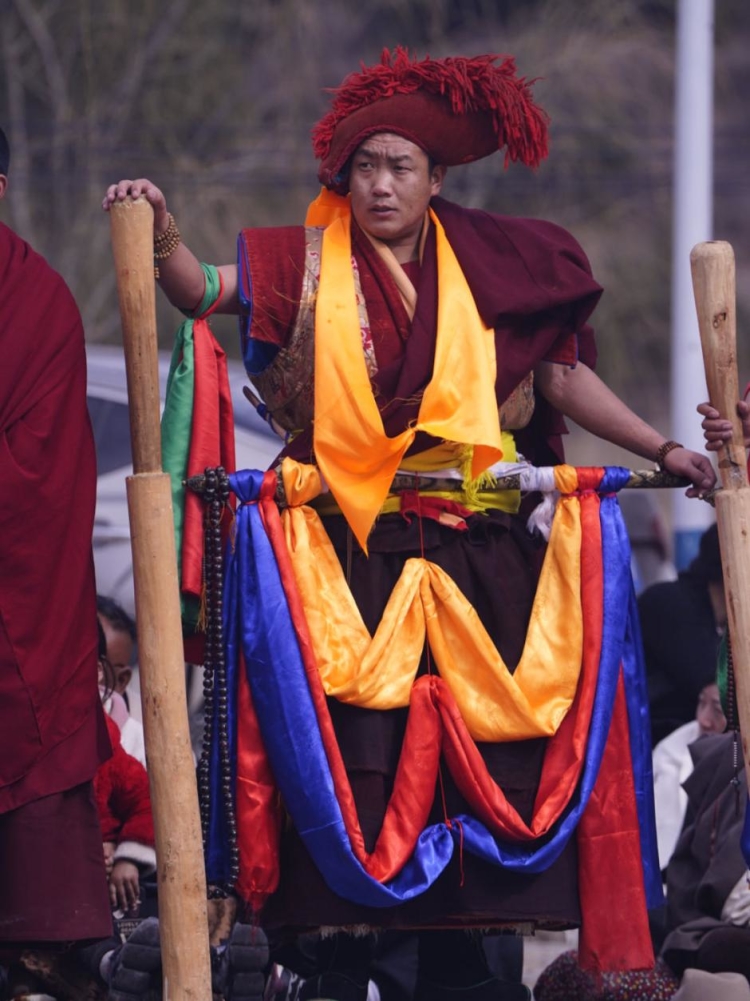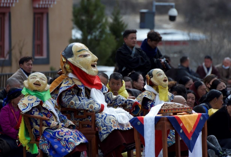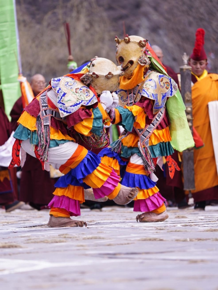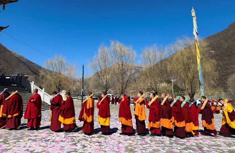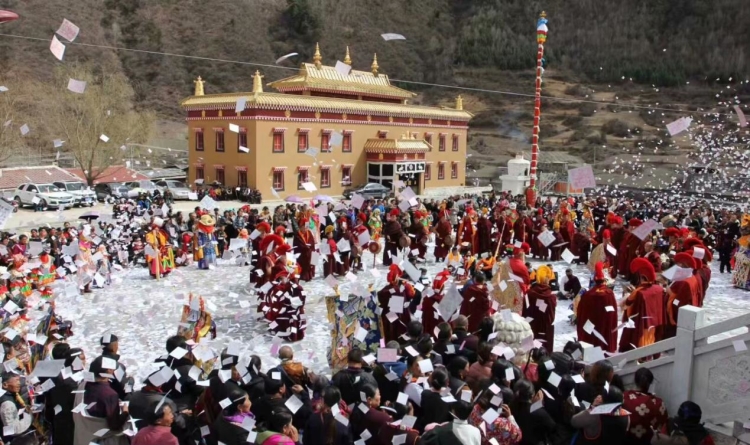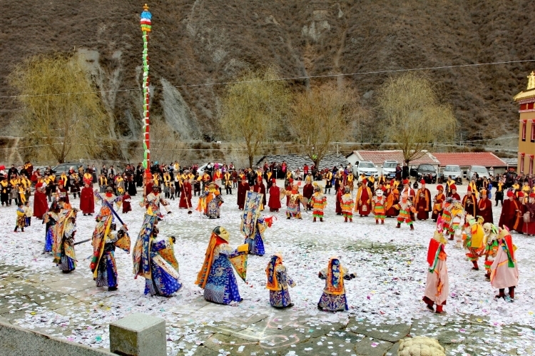 Construit en 1473, le monastère de Tashigang est un ancien monastère de la secte Jonang du bouddhisme tibétain, situé dans la préfecture autonome tibétaine d'Aba, dans la province du Sichuan. Le premier mois du calendrier tibétain est connu sous le nom de ? mois de Shenbian ? (transformation du Bouddha) en raison du fait que le Bouddha Shakyamuni a effectué des transformations lors d'une compétition avec six grands ma?tres non bouddhistes dans l'ancienne ville de Shravasti en Inde. Conformément à la tradition, du deuxième au seizième jour de ce premier mois, tous les moines du monastère de Tashigang se rassemblent pour participer ensemble à la pratique du mandala du Kalachakra. Il s'agit de l'un des événements les plus solennels de l'année au monastère de Tashigang. (Texte chinois fourni par le Thorampa Norang du monastère de Tashigang)