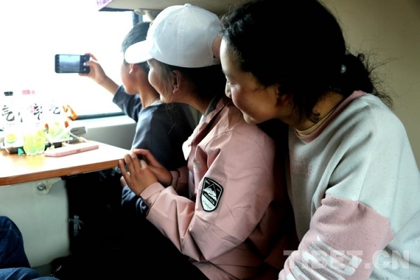 Il y avait aussi des empoyés qui venaient rappeler aux enfants l'heure de manger, des touristes qui jouaient à la danse guozhuang avec les enfants, et des petites s?urs qui prennent l'initiative de partager leur go?ter... En pensant aux expériences des étudiants dans le train, le chef d'équipe Tsering Norbu ne peut s'mpêcher de soupirer : les enfants ont fait pour la première fois un long voyage, et avant même d'arriver à destination, ils ressentaient déjà profondément la forte atmosphère familiale de la nation chinoise, ils ont vraiment de la chance.