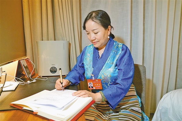 A la veille des Deux sessions nationales, lorsque les journalistes ont interviewé Mingji Tsomo, elle était encore en train de peaufiner ces propositions.