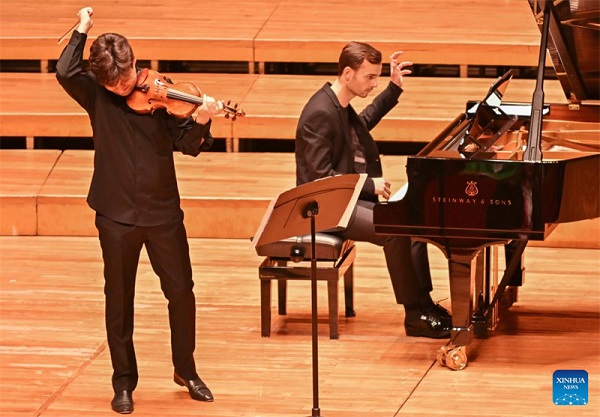 Des artistes fran?ais se produisent lors d'un concert sino-fran?ais à la salle de concert Qintai de Wuhan, capitale de la province du Hubei (centre de la Chine), le 19 mars 2024. (Du Zixuan / Xinhua)