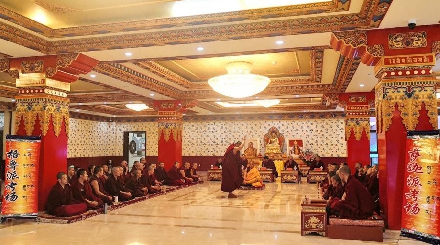 Selon les informations, 14 candidats représentant six écoles – Gelug, Sakya, Jonang, Kagyu, Nyingma et B?n – participent à cet examen oral. Parmi eux, 4 sont issus de l'école Gelug, tandis que les écoles Sakya, Jonang, Kagyu, Nyingma et B?n comptent chacune 2 participants. Les examens oraux se déroulent simultanément dans trois salles.