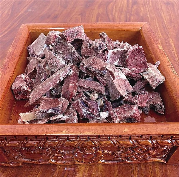 En mars ou avril de l'année suivante, après un hiver entier, les lanières de viande de yak, initialement juteuses et d'un rouge vif, rétrécissent visiblement et prennent une teinte de rouge sombre. La perte d'eau les rend plus légères. En les pressant avec les mains, les lanières ne sont plus élastiques et présentent des textures distinctes, ce qui indique que le séchage est terminé. Prenez-en un morceau, mettez-le dans votre bouche et machez-le lentement. Son ar?me riche et charnu persiste longtemps en bouche.