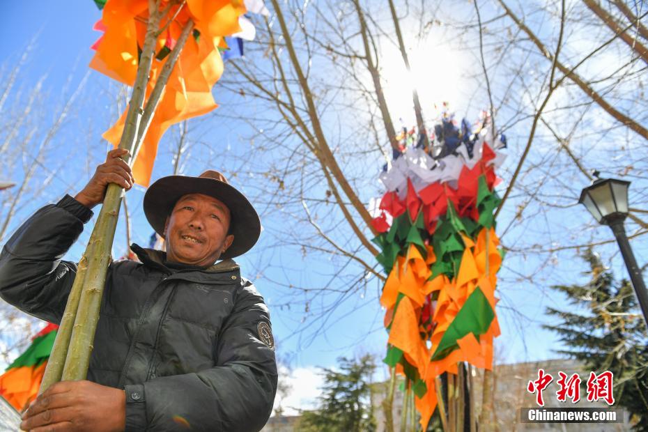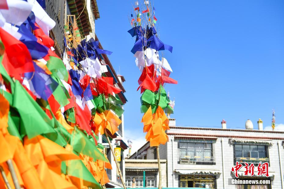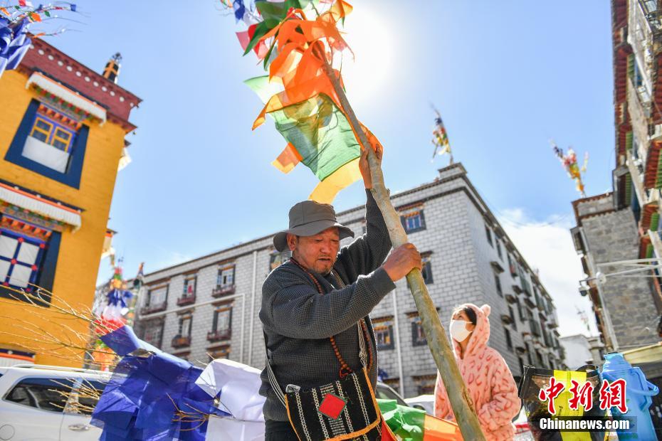 à l'approche du Nouvel An tibétain, dans les rues de Lhassa, au Xizang, des agriculteurs et des éleveurs s'affairent à coudre des drapeaux de prières multicolores. Ces articles sont indispensables pour célébrer cette fête. Pendant le Nouvel An tibétain, les habitants choisissent un jour de bon augure pour remplacer les drapeaux de prières sur le toit de leur maison, espérant ainsi une année prospère et placée sous le signe de la chance et de l'harmonie.