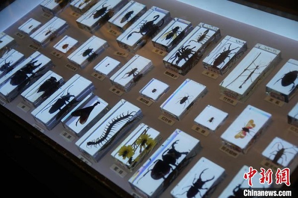 Des spécimens d'insectes exposés.