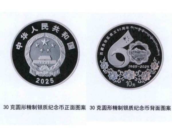 L'avers des pièces représente l'emblème national de la République populaire de Chine, tandis que le revers adopte comme motif principal le logo des célébrations du 60? anniversaire de la fondation de la Région autonome du Xizang, accompagné de motifs floraux de cosmos bipenné, ainsi que des inscriptions ? 60e anniversaire de la fondation de la Région autonome du Xizang ?, écrit en chinois standard et en tibétain, ainsi que la valeur faciale. Jing Jun, directeur général du Groupe China Gold Coin, a indiqué que cet ensemble de pièces commémoratives utilise des techniques de frappe avancées telles que la gravure en relief, la finition miroir et le sablage au laser, reflétant pleinement les réalisations du développement du Xizang et sa culture unique.