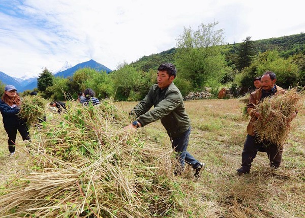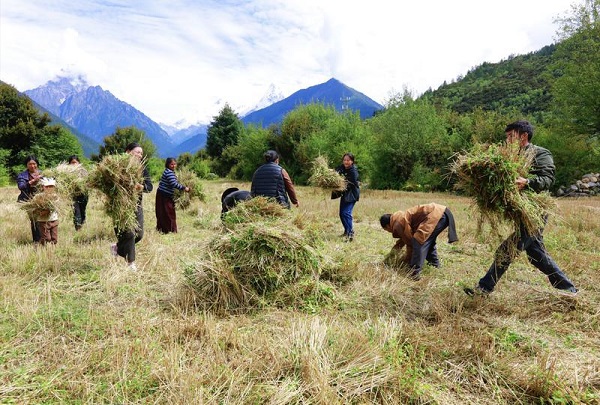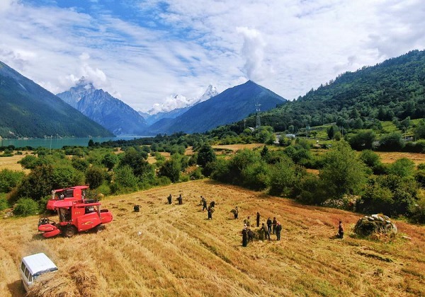 En ce début d'automne, le village de Gyêrba, situé dans le canton de Conggo du comté de Gongbo Gyamda de la ville de Nyingchi, respire partout la joie des moissons. Dans les champs au bord du lac Basum Co, les épis d'orge dorés sont pleins et m?rs, tandis que le blé embaume l'air. Les villageois, certains armés de faucilles mécaniques, d'autres aux commandes de machines agricoles, s'activent dans des allers-retours pour engranger dans les greniers les fruits de leur labeur. La récolte abondante des cultures de plateau doit beaucoup aux terres fertiles et à la fonte généreuse des neiges autour du lac Basum Co, mais aussi à la clémence des conditions météorologiques cette année. ? Les grains sont dodus, la récolte est encore meilleure que les années précédentes ! ? dit un villageois, le sourire aux lèvres. Et ce bonheur de la moisson est amplifié grace à un environnement géographique privilégié. Profitant de la proximité immédiate du site touristique du lac Basum Co, les visiteurs affluent toute l'année. Saisissant cette opportunité, le village de Gyêrba a développé un écotourisme prospère : les villageois ouvrent des chambres d'h?tes et des restaurants, tout en vendant leur orge et d'autres produits agricoles. Ainsi, les récoltes des champs se transforment en revenus bien réels, et le revenu disponible par habitant augmente régulièrement. Au milieu des montagnes verdoyantes et des eaux claires, la richesse de Gyêrba ne se résume pas à des greniers pleins : elle est aussi le reflet vivant de la revitalisation rurale et des progrès réalisés par les villageois vers une vie meilleure.