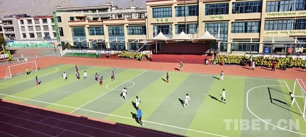 • L'arrondissement de Chengguan, à Lhassa au Xizang, organise la 9? édition de la ligue scolaire de football ? étoiles du futur ? à l'école primaire Haicheng