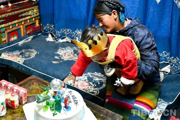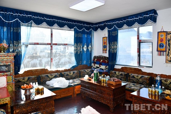 Son épouse, Tsering Lhazom, est assise devant la porte en train de tricoter de la laine. Lorsqu'elle évoque leur nouveau foyer, elle ne tarit pas de paroles. ? Nous avons dépensé plus de 30 000 yuans pour aménager cette nouvelle maison. Les meubles ont tous été achetés dans le chef-lieu du comté de Dingri, et certains proviennent aussi de l'ancienne maison. Après le Nouvel An, nous pensons encore décorer un peu ces grands murs blancs ?, explique-t-elle. Dans la maison de Tenzin, les murs sont couverts de certificats de mérite des enfants. Parmi leurs trois enfants, l'a?née poursuit ses études à l'Université du Xizang, la cadette est en première année de lycée, et le plus jeune s'apprête à entrer à l'école maternelle.