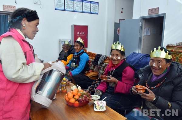 Le soleil hivernal, doux et chaleureux, traverse les vitres et illumine la Maison du Bonheur du village de Qie, situé dans le canton de Gojag, du comté de Dinggyê, à Shigatse, au Xizang. Des personnes agées se sont rassemblées sur des tapis colorés, une tasse de thé sucré à la main, célébrant ensemble un anniversaire collectif. Sous cette lumière bienveillante, chaque visage rayonne de sérénité et de satisfaction. Cet ensemble, réaménagé à partir de batiments villageois inoccupés, est désormais devenu une ? maison ? commune des 65 a?nés du village.