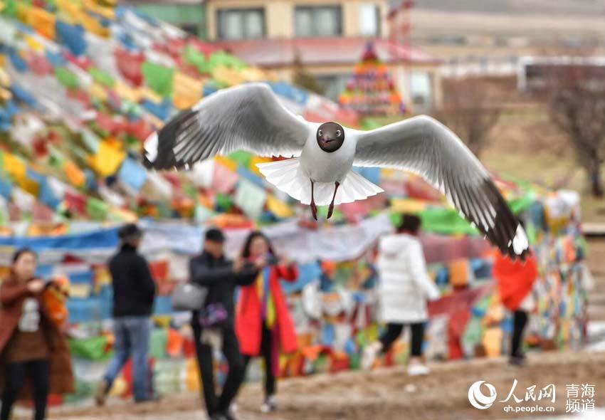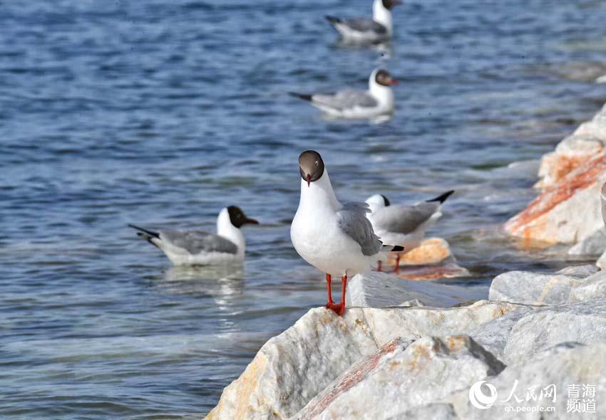 Les oies à tête barrée, les goélands à tête brune, les goélands pèlerins et les cormorans représentent à l'heure actuelle les principaux groupes d'oiseaux migrateurs estivaux qui se reproduisent au lac Qinghai.