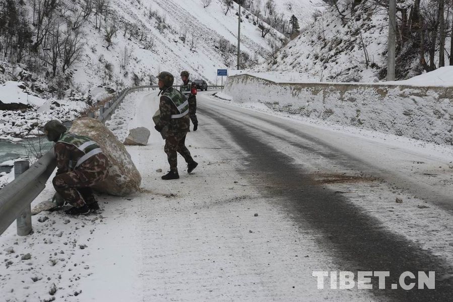 Il neige dans le sud-est du Tibet depuis plusieurs jours, ce qui provoque un certain nombre de désastres à la section de la ville de Chamdo de la route Sichuan-Tibet. La route est recouverte d'une couche de neige épaisse, et des glissements de pierres ont lieu constamment. Afin d'assurer la bonne circulation sur ce passage important, des policiers et soldats bravent les épreuves naturelles en silence dans les montagnes du plateau.