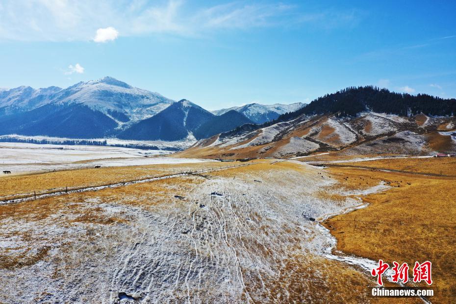 Après une chute de neige printanière, les montagnes du parc national du mont Qilian dans la région de Qinghai, dans la préfecture autonome tibétaine de Haibei, province du Qinghai, étaient recouvertes de neige, et entourées de nuages ??et de brouillard.