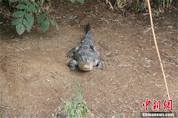 Un alligator chinois se cache dans l'herbe sur le rivage du ? village des alligators chinois ? à Huzhou, dans la province du Zhejiang (est de la Chine), le 26 ao?t. L'alligator chinois est une espèce rare unique en Chine. C'est un animal sauvage protégé de première classe et l'une des plus petites espèces de crocodiles au monde. L'alligator chinois existe depuis plus de 200 millions d'années au monde, il est ainsi connu comme un ? fossile vivant ?, car il vivait à la même époque que les dinosaures.