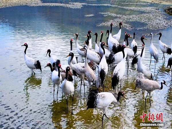 Il y a une grande zone humide au bord de la rivière à Mainling, dans la ville de Nyingchi, au Tibet, qui devient chaque hiver un paradis hivernal pour de nombreux oiseaux rares. Parmi eux, le plus spécial est la grue à cou noir, un animal sauvage protégé national de première catégorie. La grue à cou noir est la seule grue qui vit et se reproduit sur le haut plateau. Chaque hiver, un grand nombre de grues à cou noir migrent de leurs aires de reproduction vers la vallée du cours moyen de la rivière Yarlung Zangbo pour y passer l'hiver. Elles se nourrissent et jouent dans la vallée, les terres agricoles et les marais, profitant de la chaleur soleil d'hiver.