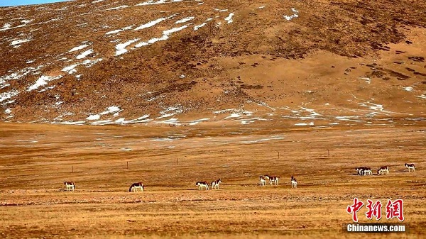 Récemment, des photographes ont photographié plusieurs troupeaux d'anes sauvages tibétains dans différents cantons du comté de Tianjun de la préfecture autonome mongole et tibétaine de Haixi, qui se situent dans la zone Qinghai du parc national du mont Qilian. Ces anes sauvages tibétains étaient en train de brouter l'herbe sèche ou de se promener parmi les buissons. La présence de ces troupeaux, mêlée aux vastes prairies dorées à proximité et aux montagnes enneigées au loin, crée un tableau pittoresque.