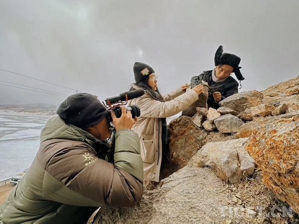 En photo : l'équipe d'images naturelles des Amis des Vies de l'Himalaya enregistrant des récits oraux dans des zones extrêmement froid, à plus de 4500 mètres d'altitude.