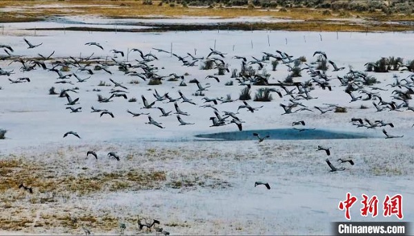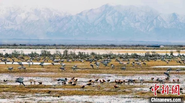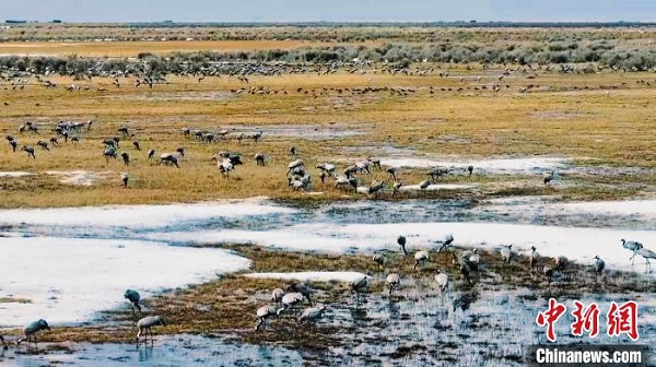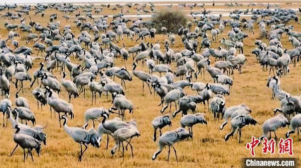Depuis plusieurs jours, des groupes de grues cendrées se rassemblent au lieu-dit de Tiesigai, situé dans le canton de Balong, dans le comté de Dulan, appartenant à la préfecture autonome mongole et tibétaine de Haixi, dans la province du Qinghai. La grue cendrée est une espèce protégée de deuxième classe au niveau national en Chine.