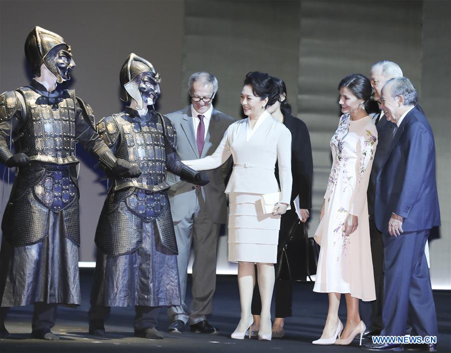 Dans la même journée, Peng Liyuan, épouse de M. Xi, a visité le Teatro Real (Théatre royal) au centre-ville de Madrid, accompagnée de la reine Letizia d'Espagne.