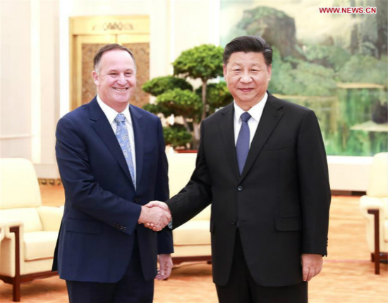 Le président chinois Xi Jinping a rencontré mercredi l'ancien Premier ministre néo-zélandais, John Key, au Grand Palais du Peuple à Beijing.