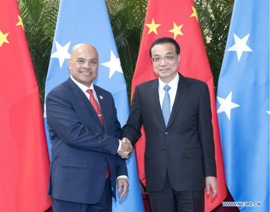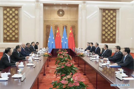 Le Premier ministre chinois, Li Keqiang, a rencontré vendredi à Beijing le président des Etats fédérés de Micronésie, David W. Panuelo, appelant les deux pays à renforcer la coopération sur le changement climatique et la pêche maritime.
