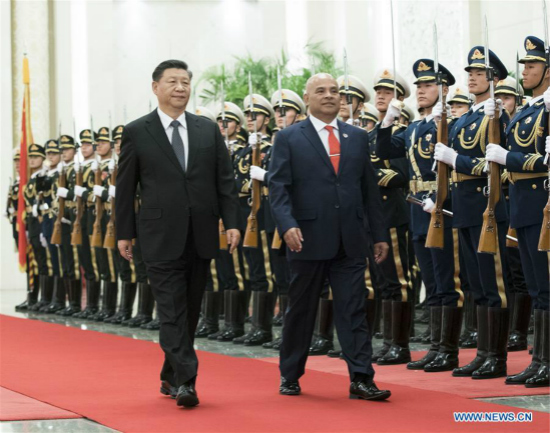 Ces trente dernières années depuis l'établissement des relations diplomatiques, les deux pays ont fait preuve d'un respect, d'une confiance et d'un soutien mutuels et ont mené une coopération pragmatique sur la base de l'égalité et des bénéfices mutuels, faisant avancer les liens bilatéraux et apportant des bénéfices tangibles aux deux peuples, a expliqué le président chinois.