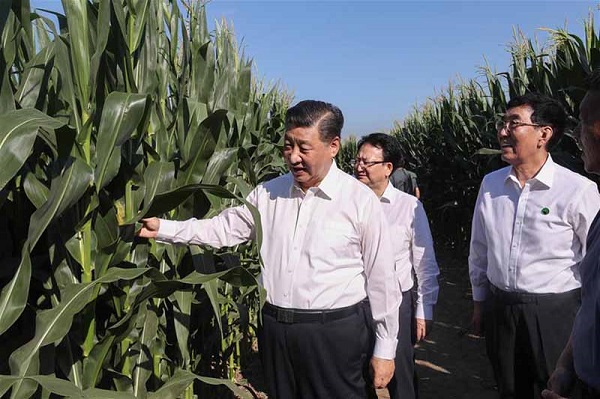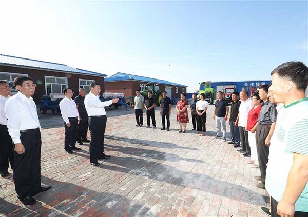 Lors de sa visite à Lishu, un district de la ville de Siping, M. Xi s'est rendu dans une zone de démonstration pour la production des aliments verts et à une coopérative d'agriculteurs pour s'informer sur la production céréalière, la protection et l'utilisation du sol noir, ainsi que l'agriculture mécanisée à grande échelle.