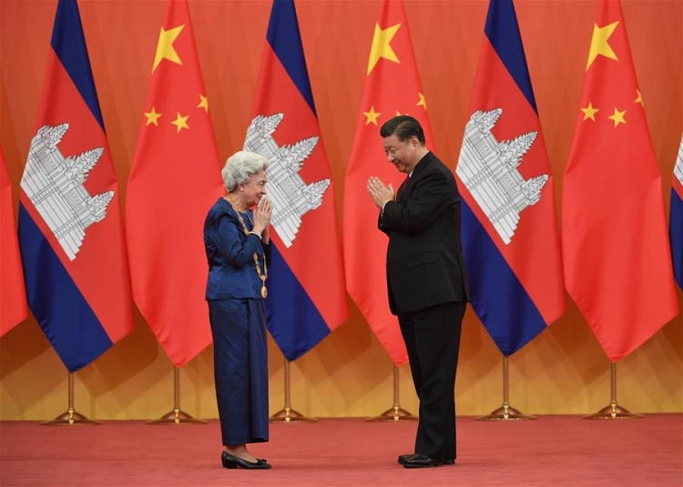 La reine mère Monineath est un témoin important et un promoteur de l'amitié sino-cambodgienne, et elle a créé une étroite relation avec la Chine depuis qu'elle a accompagné Norodom Sihanouk, prince du Cambodge à l'époque, en Chine en 1958 pour la première fois, a déclaré M. Xi lors d'un discours.